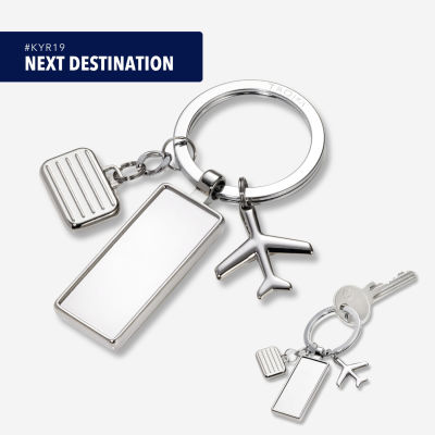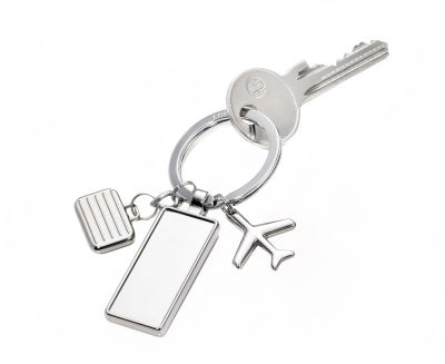 Flugbegleiter Wer viel unterwegs ist, hat ihn immer dabei. Schlüsselanhänger NEXT DESTINATION mit 3 reiselustigen Charms-Anhängern: Flugzeug, Koffer und Gepäcklabel. Ab 100 Stück mit Ihrem eigenen Dekor. TROIKA wünscht: Gute Reise!