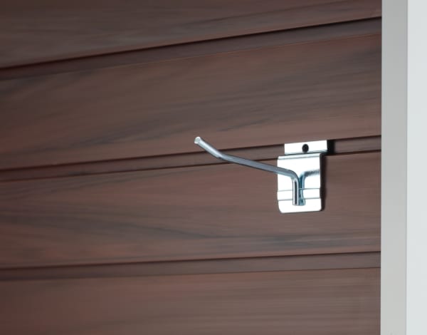 Einzelhaken für FREERAIL Lamellenwand (10F304, 10F318, 10F329, 10F331, 10F333, 10F334), zur Selbstbedienung, Länge 100 mm, Drahtstärke 4,8 mm, Stahl, verzinkt, silberfarben