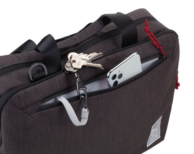 - Der wasserabweisende Reißverschluss der Fronttasche hält elektronische Begleiter stets trocken.