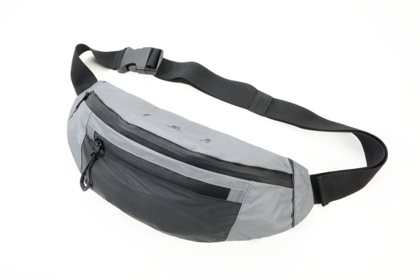 Die Gürteltasche besteht aus extrem gut reflektierendem Nylon – Safety first beim Outdoor-Sport im Dunkeln. Schlechtes Wetter steckt die Tasche lässig weg – spritzwassergeschützt nach IPX4 mit gummierten Reißverschlüssen. Im Polster der Rückseite versteckt sich ein Geheimfach. Mit verstellbarem Gurt zum Tragen auf dem Bauch, Rücken oder als Cross Body Bag. Grau und schwarz, waschbar bei 30 °C.